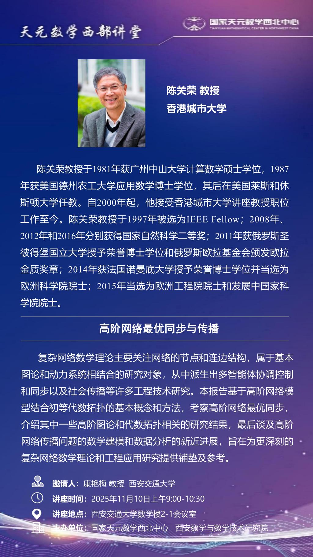 【天元数学西部讲堂】香港城市大学陈关荣教授学术报告